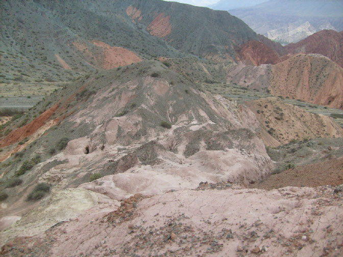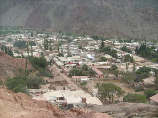 La ville de Purmamarca est dans le début d'une vallée qui va vers le Chili et c'est aussi le début de la montagne des sept couleurs « el cerro de los siete colores » : mauve, beige, vert, rose et terre de Sienne.
