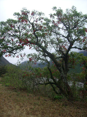 Je fais un break à Reyes, qui a des thermes et je vais en profiter pour visiter la vallée et me faire du bien dans l'eau chaude... ici les arbres sont rouges :