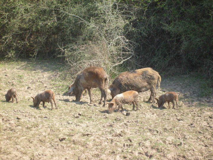 Il y a des animaux parfois comme cette famille de cochons, surtout les vaches qui sont en liberté complète, cela annonce qu'il y a une hacienda dans le coin, je risque de la voir, elles sont souvent sur le bord de la piste.