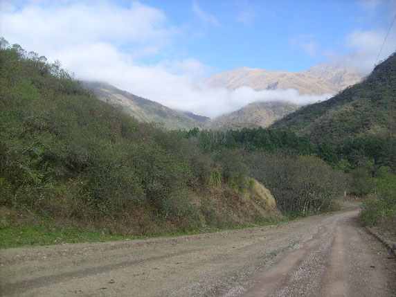 la route est en terre mais cela passe sans trop de problème en vélo, bonne montée et bonne descente, il y a deux vallées à faire avant le parc..