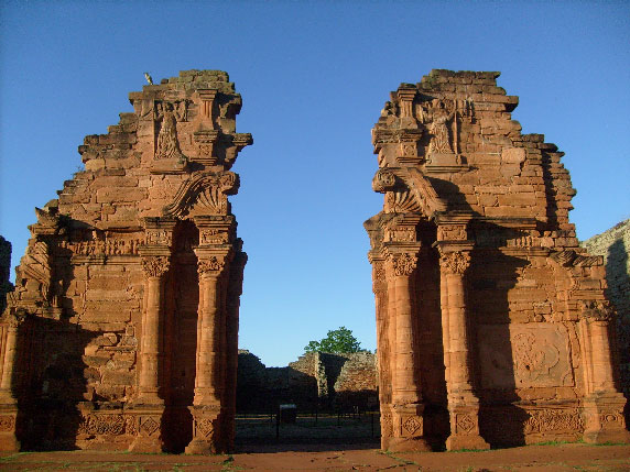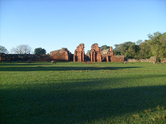 Je vais vers la mission de San Ignacio Mini, le plus belle des missions jésuites, en Argentine, celle qui a des pans entiers de murs. Fondée en 1696, a été un village de 4500 indiens guarani et deux jésuites. Voir le film « mission » de Roland Joffré... il donne une bonne idée de ce qui s'est passé et il est beau. J'arrive le soir et j'ai le temps d'assister à la visite son et lumière.