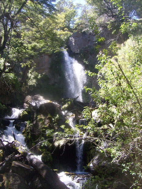 belle cascade presque en bord de route. Sa particularité vient surtout de la plate-forme en bois qui est au milieu de la rivière, face à la cascade et donne un très bon point de vue. Je passe côté Nord, le lac vert et le lac Rivadavia.