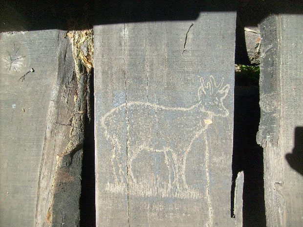 Je repasse sur un petit pont de bois et remarque des gravures que je n'avais pas vu à l'aller.